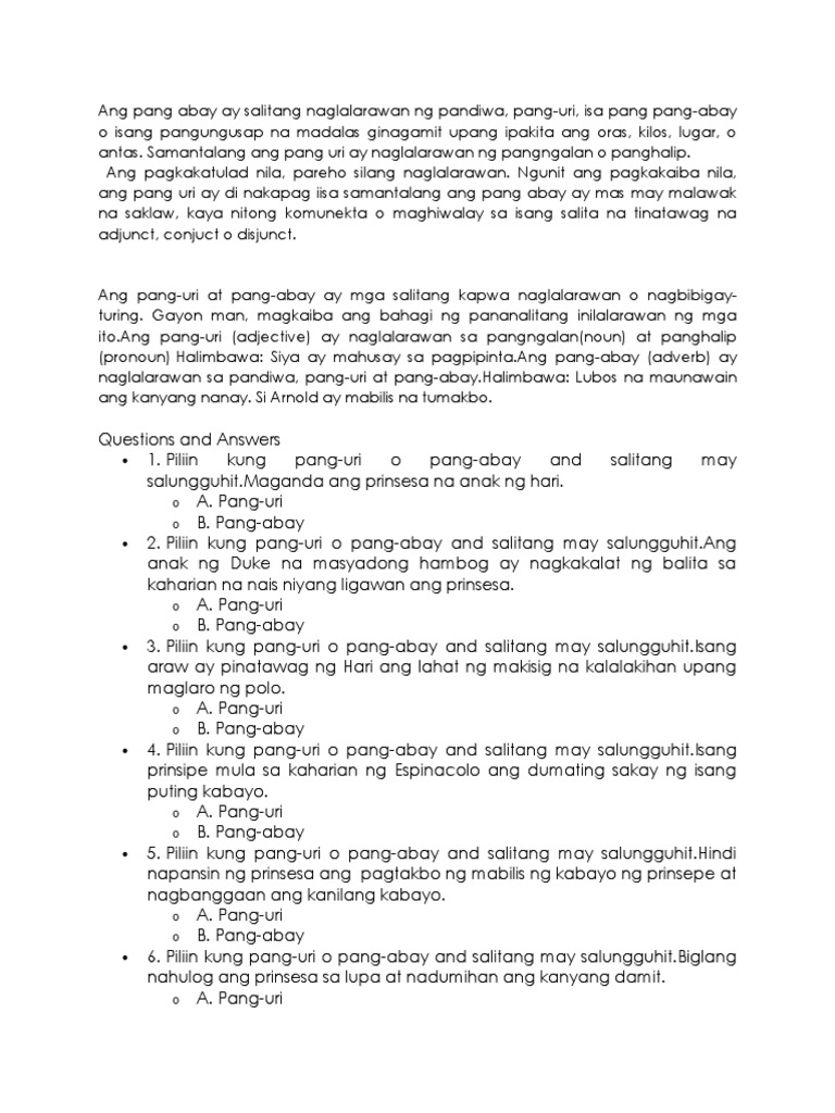 Ang Pang Abay Ay Salitang Naglalarawan Ng Pandiwa Pdf